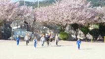 海と青空の青に、桜のピンクの花びらがひらひらと舞う様子はとてもきれいで、子どもたちはとてもうれしそうでした。