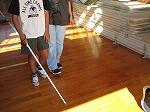 白杖を用いての視覚障害者体験等、グループに分かれて説明を
